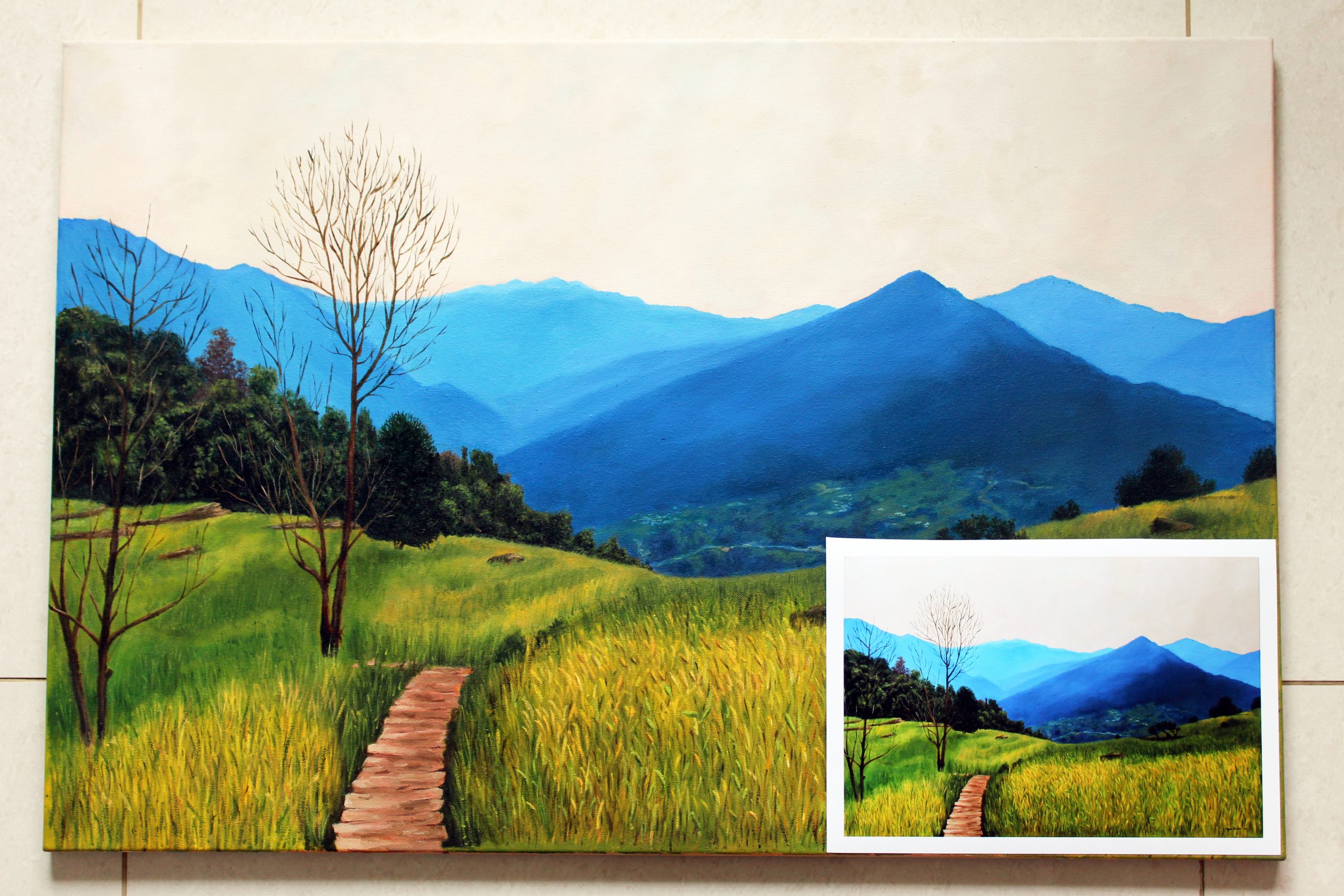 Fine art print of the original artwork ‘Escape into the meadow’.