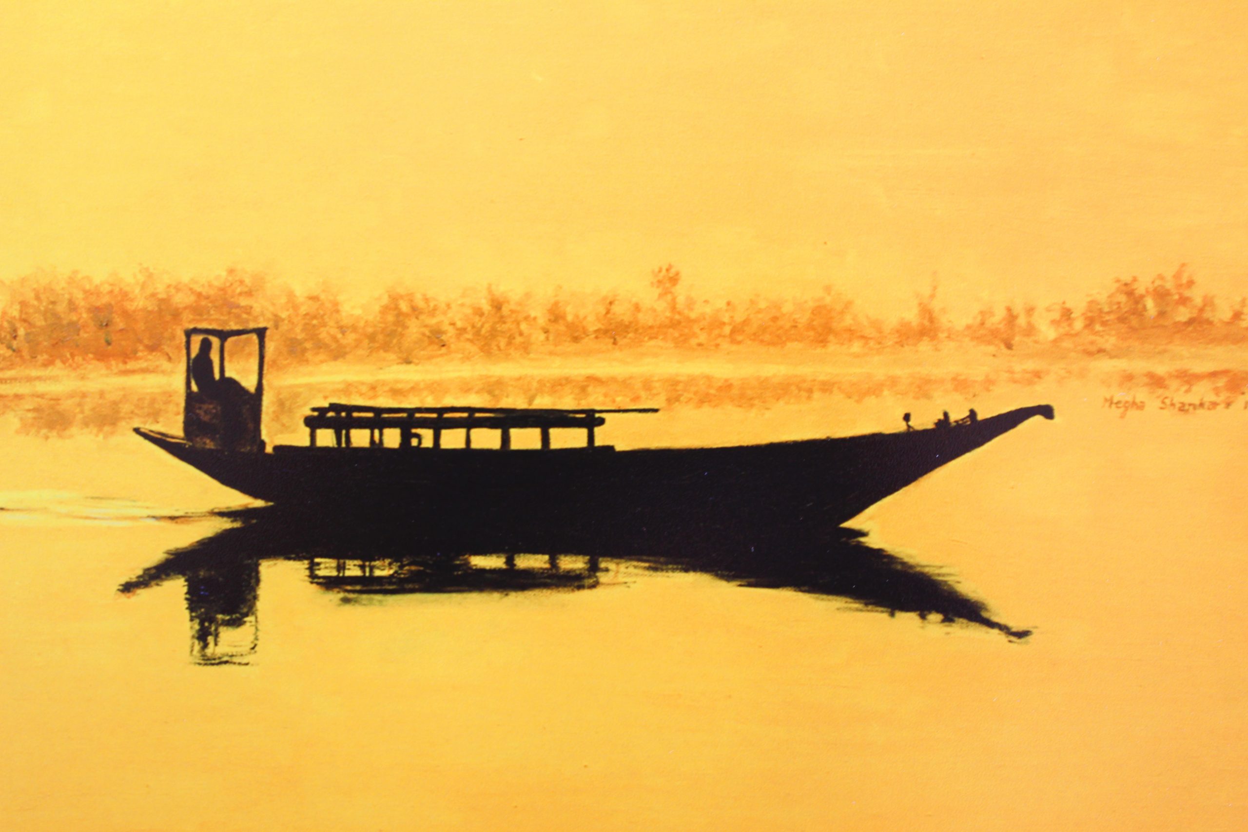 Fine art print of the original artwork ‘Serenity’ captures a calm, serene and laidback afternoon on the banks of the Hooghly river.