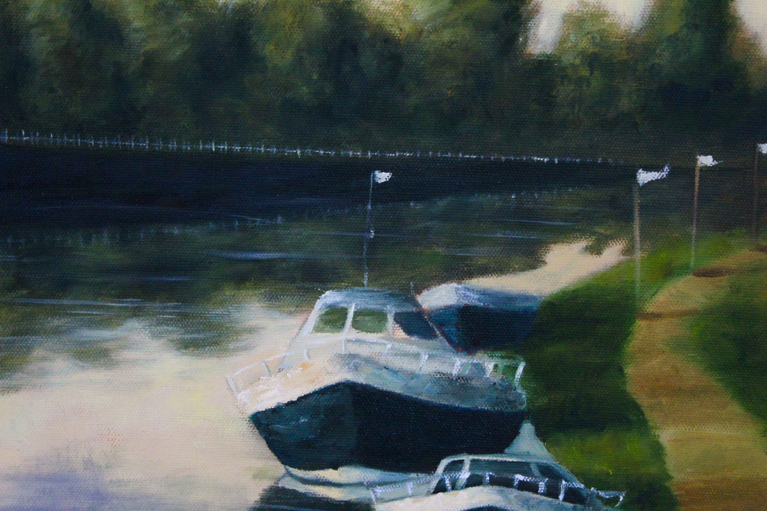 Painted on a doubled primed canvas board with premium artist colours, this original oil painting measures 24×28 inches. The painting is coated with a high quality varnish for a unified gloss finish and to provide protection from dust and erosion. Signed by the artist.
