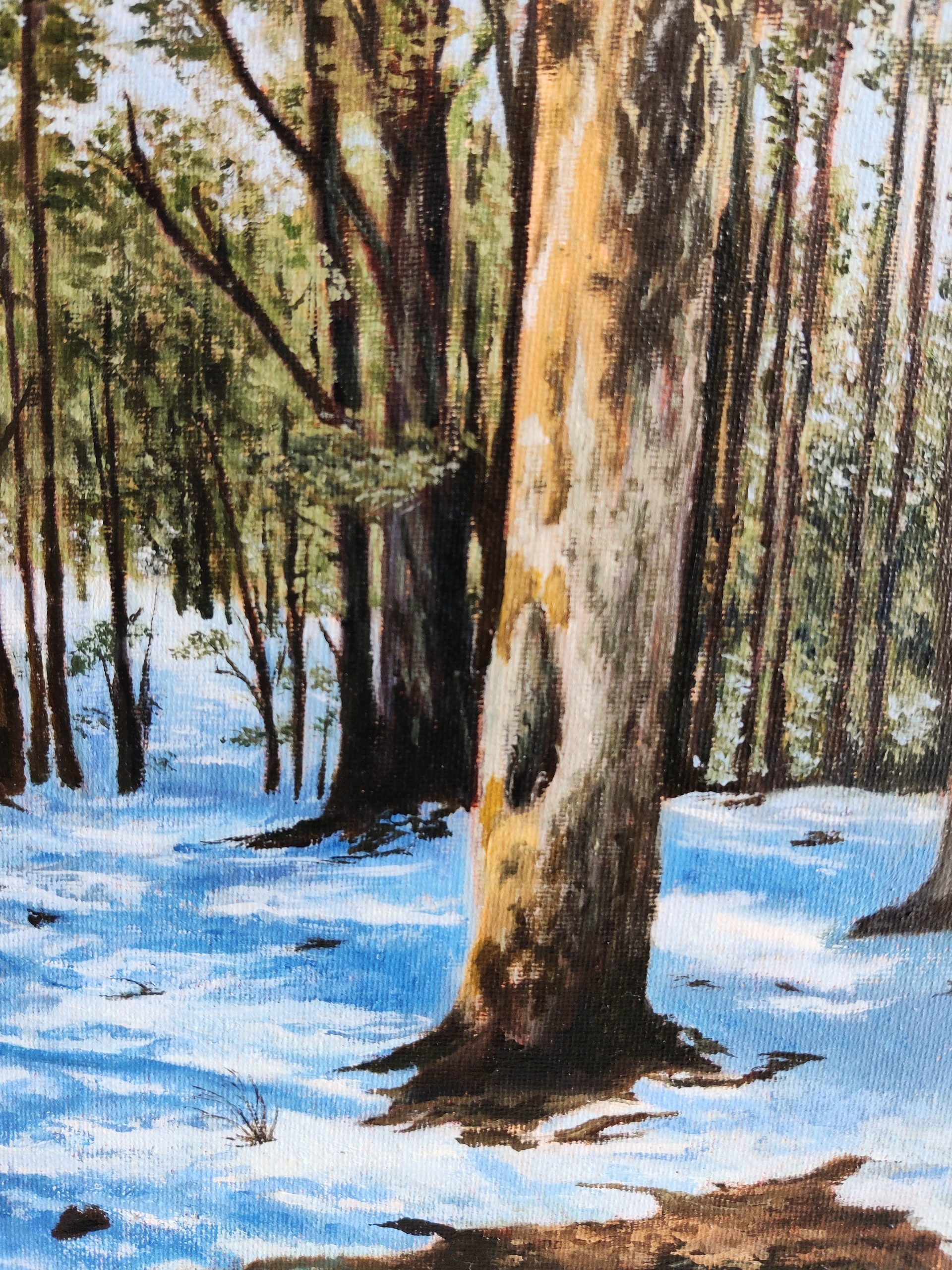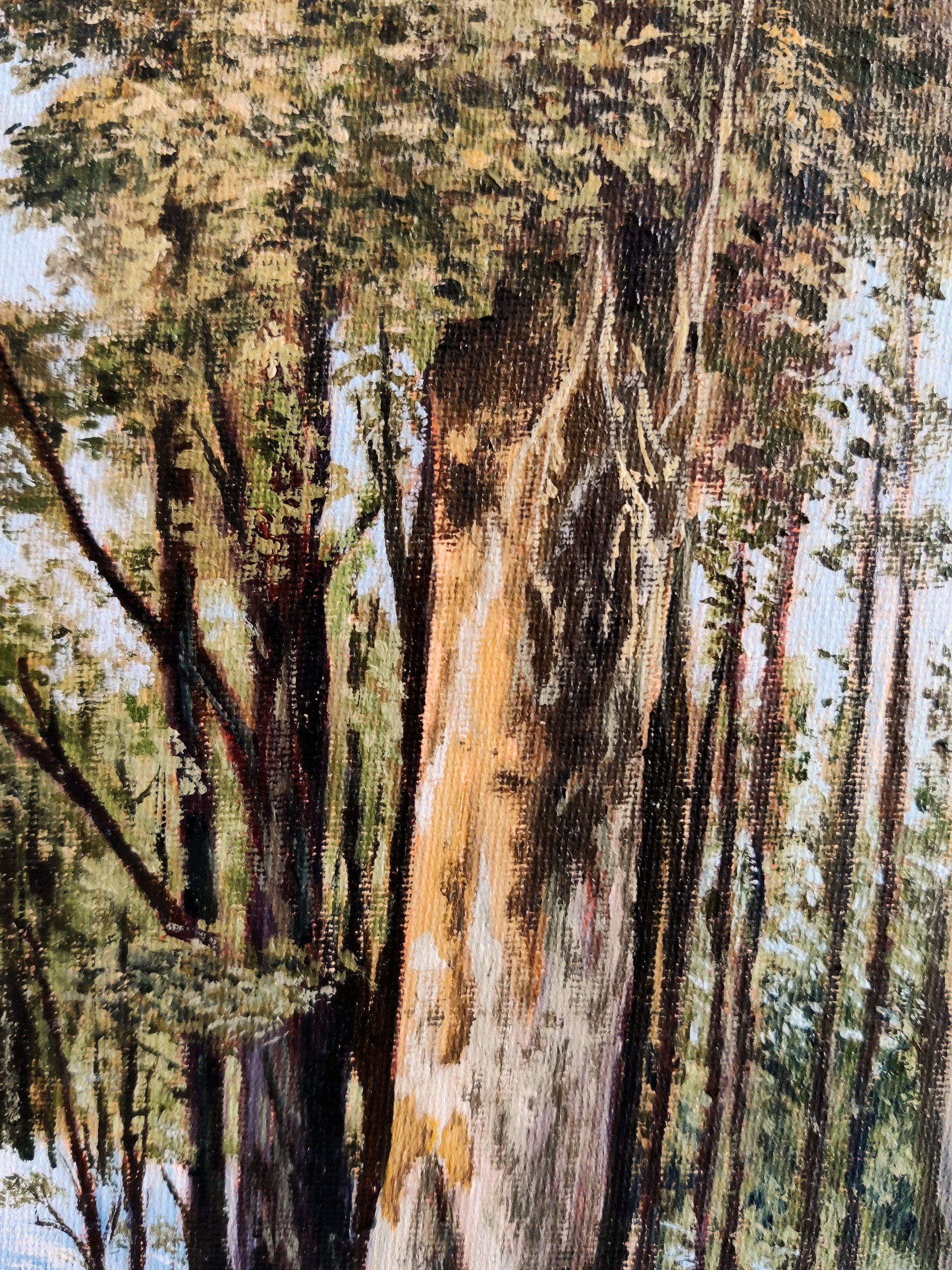 Painted on a primed canvas board with premium artist colours, this original oil painting measures 8×10 inches. The painting is coated with a high quality varnish for a unified finish and to provide protection from dust and erosion. Signed by the artist.