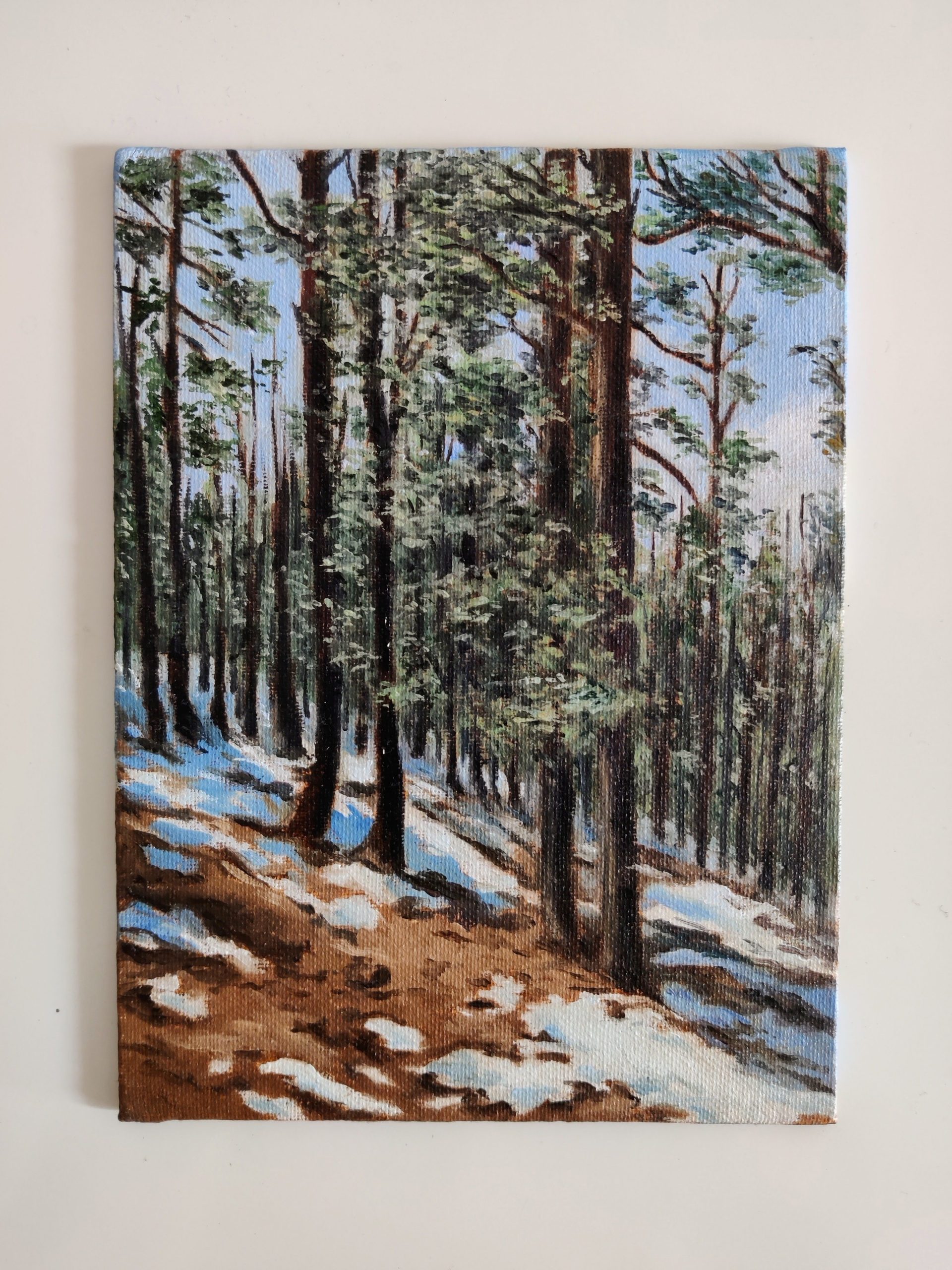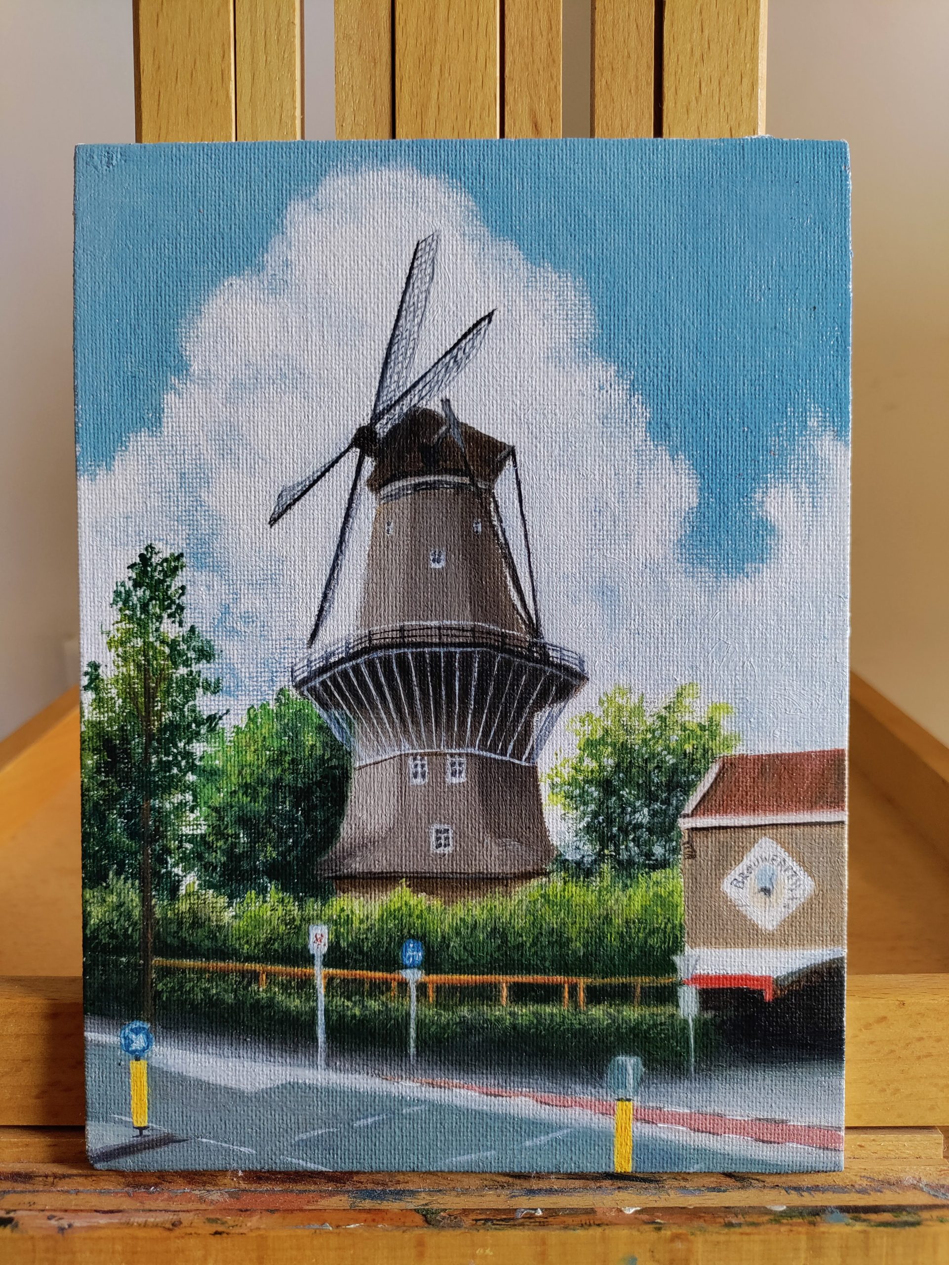 Painted on a primed canvas board with premium artist colours, this original oil painting measures 9×12 inches. The framed painting is coated with a high quality varnish for a unified finish and to provide protection from dust and erosion. Signed by the artist.